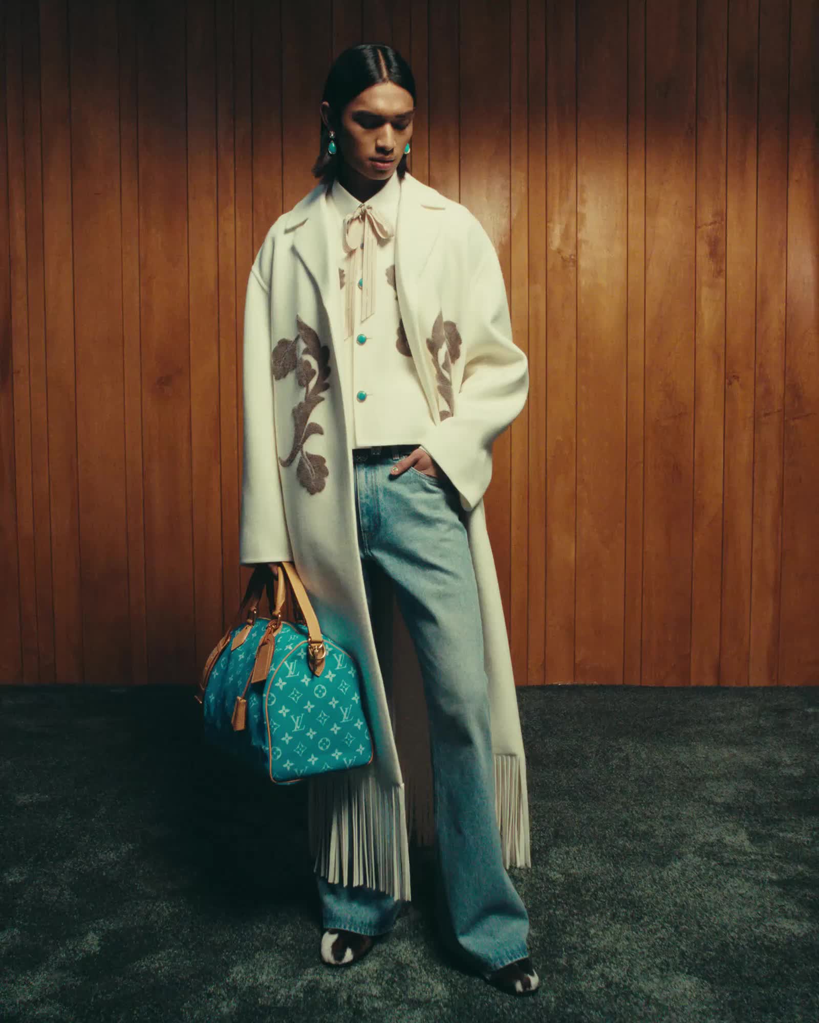 Evoking the iconography of the American Western wardrobe, cowboy-inspired silhouettes and workwear details are imbued with the Maison's heritage signatures. Punctuated by quintessential adornments and refined materials, iconic bags and accessories exude nuanced style codes of the frontier.