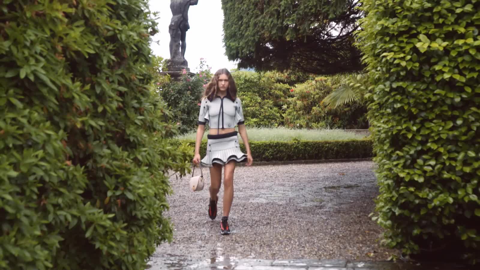 Imagined as a tale of the extraordinary, the collection is open to a myriad of influences revealing a hybrid elegance of baroque opulence and neoprene. Like Isola Bella, a ship of greenery sailing between myth and reality, Nicolas Ghesquière finds the new balance of a contemporary femininity and ultra-romance in this paradoxical notion.