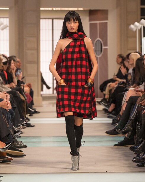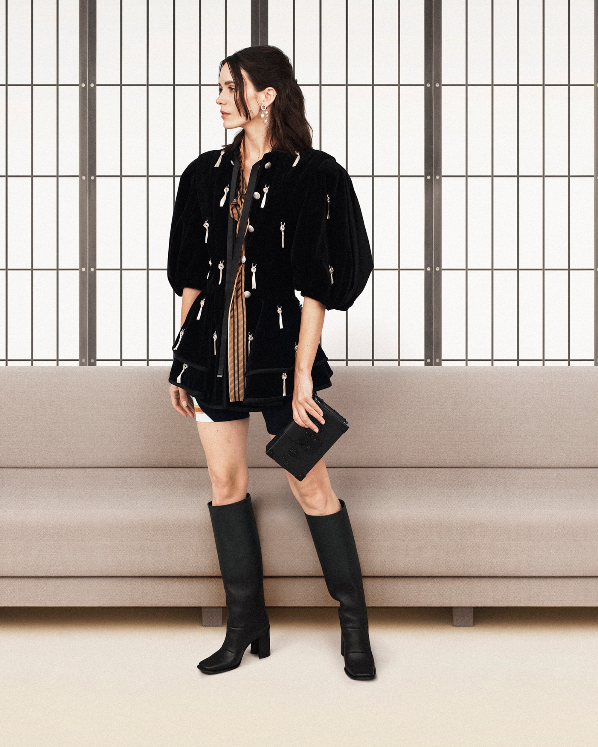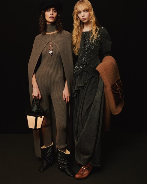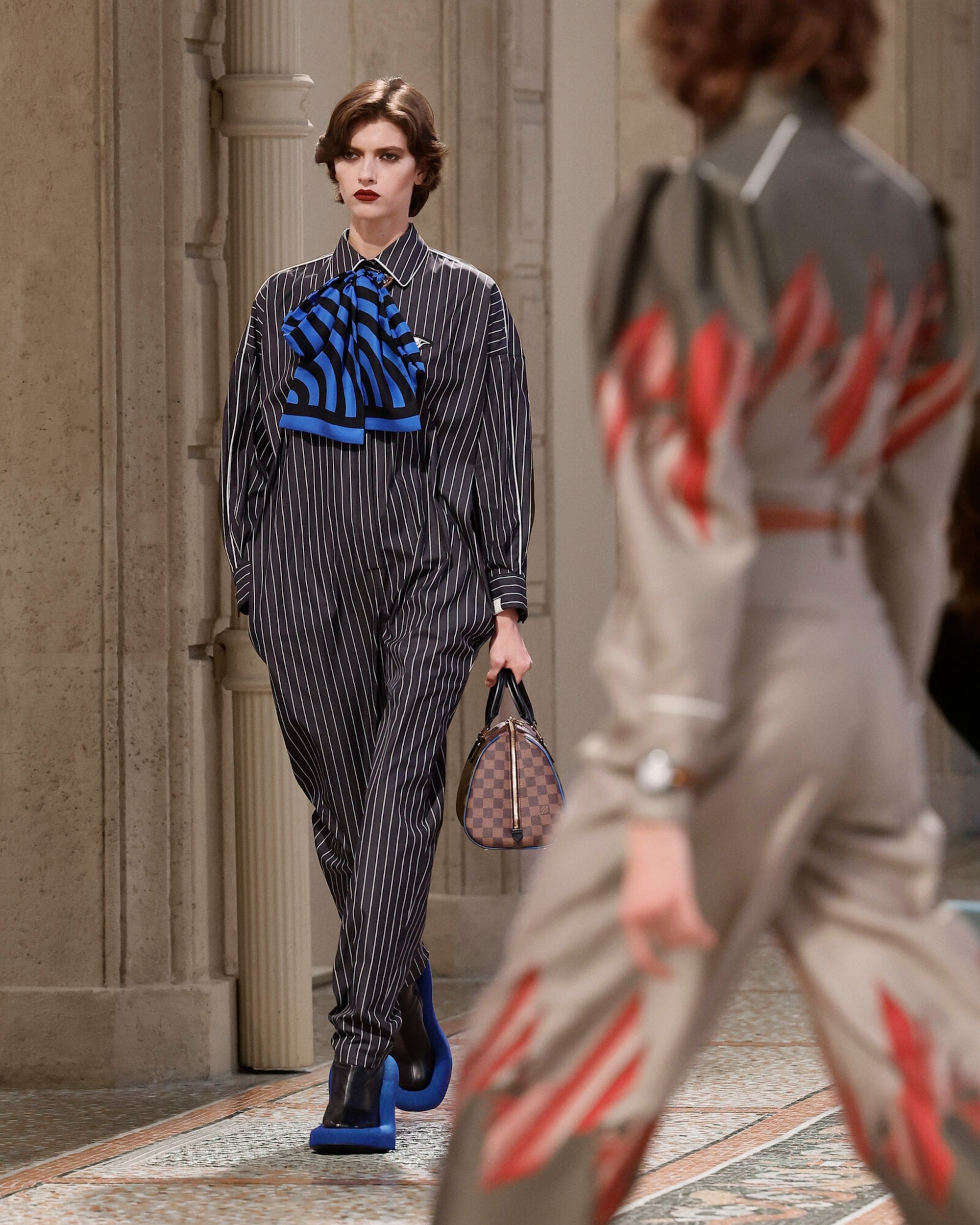 Retracing Louis Vuitton’s travel heritage, Nicolas Ghesquière merges past and present with his audacious signature aesthetic. In a play of volumes, textures, and motifs, the collection redefines modern elegance through a myriad of statement silhouettes with contrasting allures.