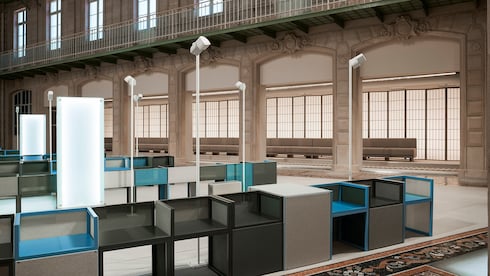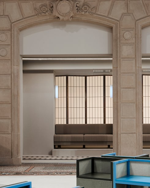 In an ode to Louis Vuitton’s spirit of travel, the 19th century Étoile du Nord building is brought to life with scenography by Es Devlin – capturing the bustling ambience of a Parisian train station within the grand atrium.