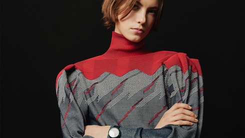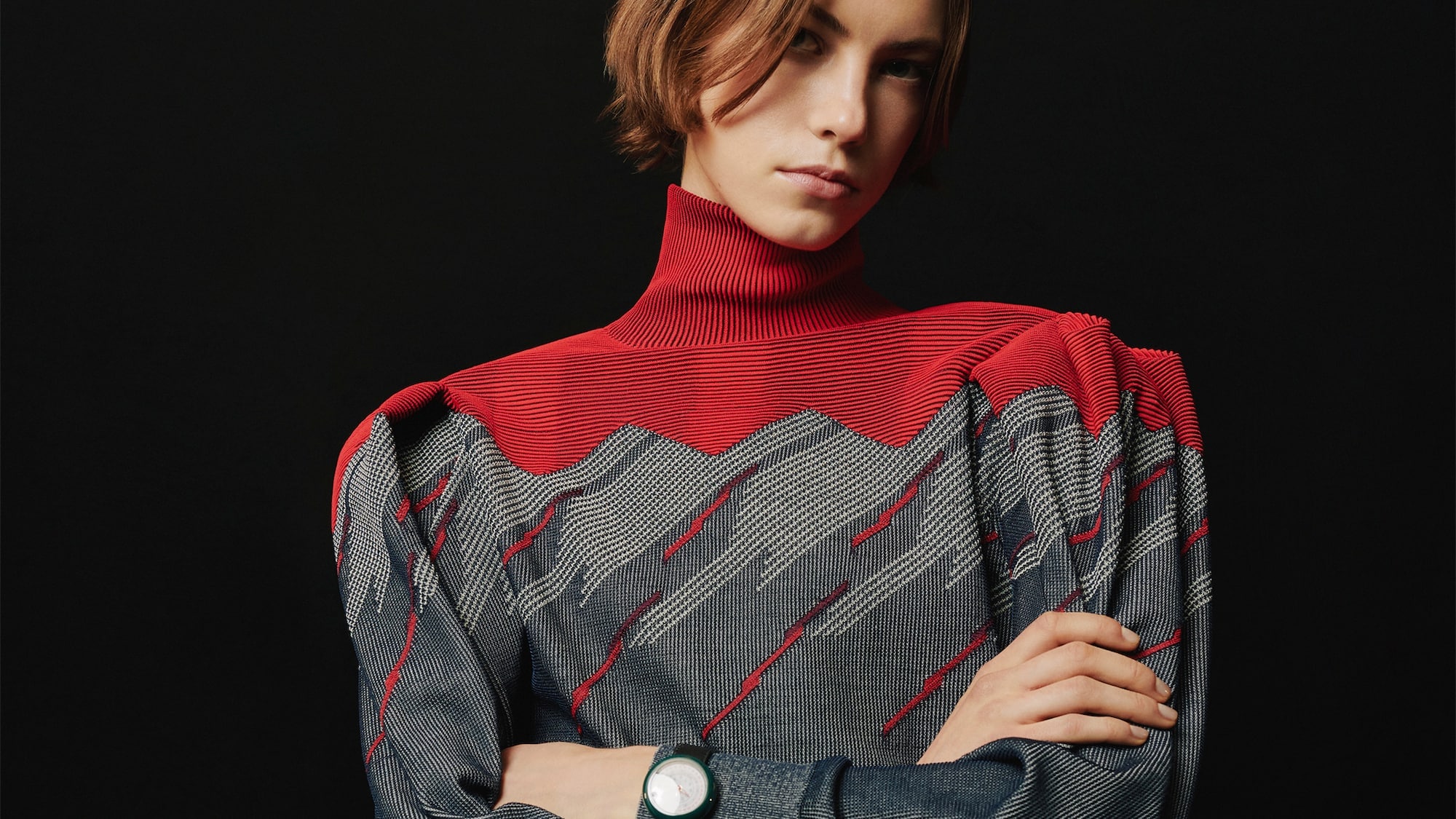 In a display of bold eclecticism, technical outerwear and ruffled gowns are accompanied by emblematic bags, shoes, and accessories in striking proportions. Infused with vibrant pops of colour and graphic prints, the collection features a collaboration with electro group Kraftwerk.