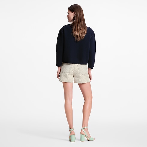 These shorts have chic appeal in comfortable cotton gabardine featuring an allover print of the classic Monogram motif in a trompe l’oeil 3D effect. Golden hardware completes the look with a playfully polished accent, including a Monogram Flower button on the fly.