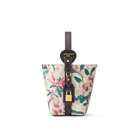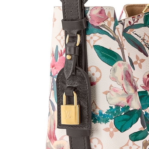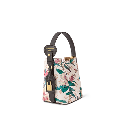 Reimagined as part of the Monogram Eden collection, this All In BB is crafted from Monogram Dune canvas elevated with a vibrant floral pattern. The classic bucket-shaped profile is trimmed with cowhide and accented with a gold-toned padlock and signature LV name tag. Inside, there is a removable zipped pouch and enough space to store a phone, wallet and keys.