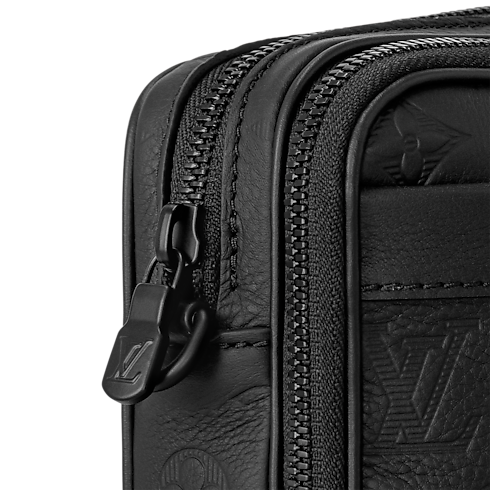 Monogram Shadow leather, with its discreet Monogram embossing, brings masculine elegance to this Alpha Wearable Wallet. This small bag, perfect for transporting daily essentials, has two zipped compartments and an outside flat pocket, adorned with two signature rivets. A removable shoulder strap adjusts for comfortable carry.