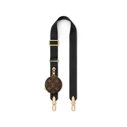 The Bandoulière Strap comes in nylon woven with the Louis Vuitton signature. Hanging from the strap is a removable round coin purse in Monogram Reverse canvas. This adjustable strap can be attached to a variety of bags by means of its two gold-tone snap hooks.