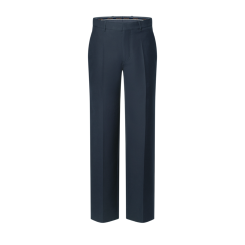 These beautifully draped pants are crafted from navy blue double-faced crepe in a sumptuous cotton-silk blend. Pick-stitched details add a sartorial accent, while a rear pocket is adorned with a VVN leather signature tab recalling the House’s leather goods heritage. This midseason wardrobe essential makes a chic and easy set with a matching shirt.