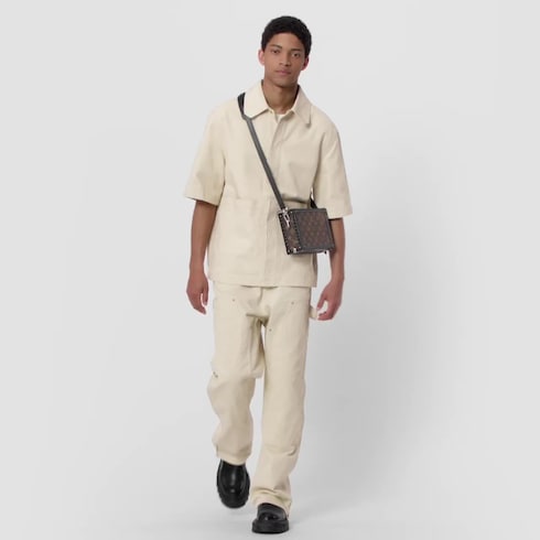An homage to Louis Vuitton’s trunkmaking legacy, the compact Clutch Box is a hard-sided bag for men unveiled at the Spring-Summer 2020 show. Made from Monogram canvas with black-leather trim and rivets, this bag has an adjustable strap for shoulder and cross-body carry. An inside zipped pocket and two large gusseted compartments make it practical.