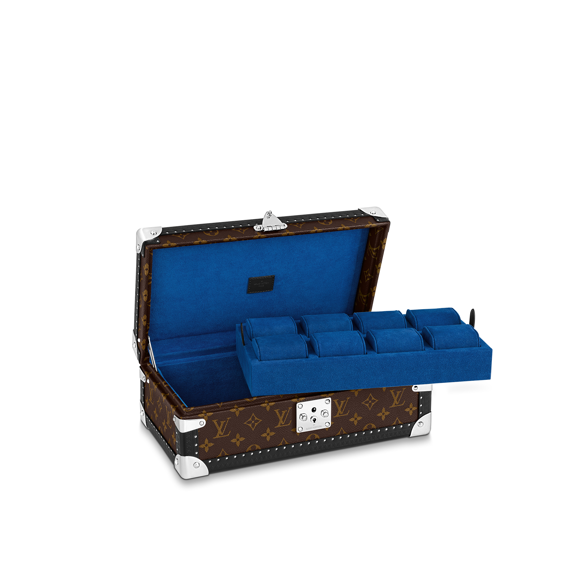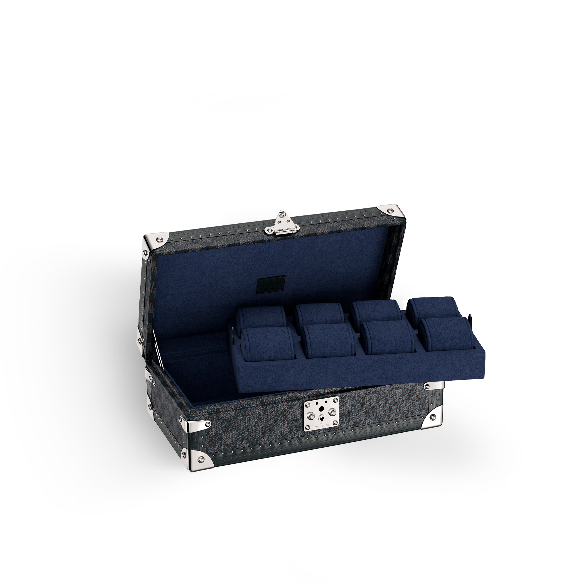 Smart and elegant, the Coffret 8 Montres enables the clientele to safely carry their most precious watches. It comes with the Monogram Eclipse signature.
