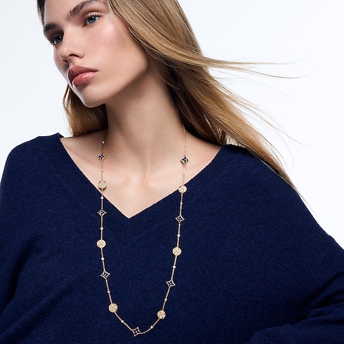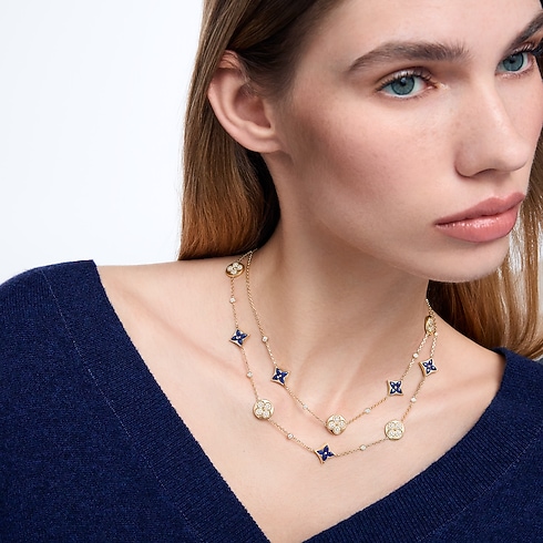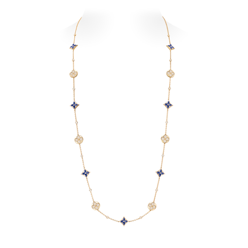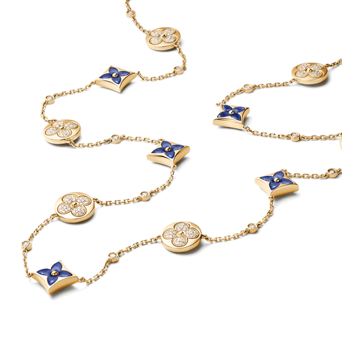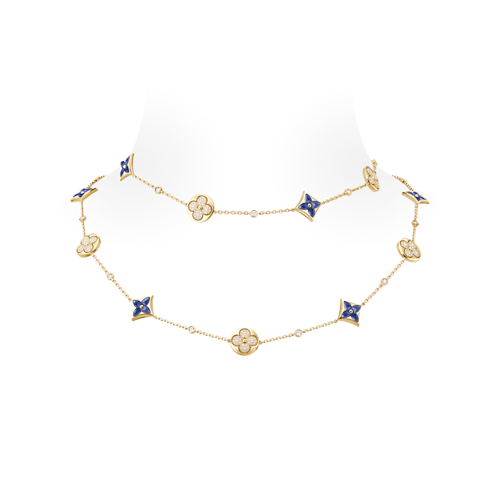 Color Blossom BB Star and Sun Multi-Motif Long Necklace, Yellow Gold, Sodalite and Diamonds