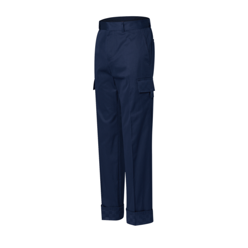 These timeless cargo pants from the Louis Vuitton 37th Americas Cup collection feature a discreet Damier on the side pockets and turnups. ‘Marque L.Vuitton déposée’ signatures grace both the Damier and the embroidered pocket tabs. An embroidered tricolor Gaston on a rear pocket adds a sporty final touch to this go-to summer essential.
