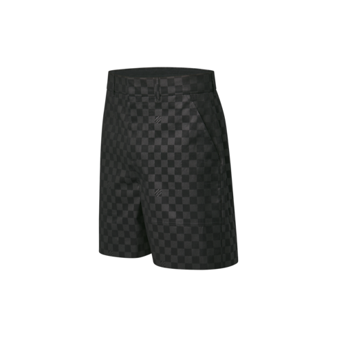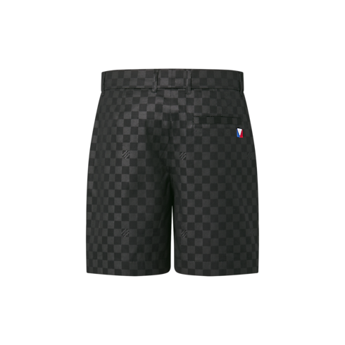 These versatile black cotton shorts bring a smart signature twist to summer looks. They are embellished with a tonal allover printed Damier motif incorporating ‘Marque L.Vuitton déposée’ signatures, while an embroidered tricolor Gaston label distinguishes the piped pocket at the back. This effortless piece from the LV Cup capsule can be dressed up or down with shorts or a tailored jacket.