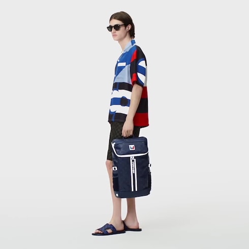 These versatile black cotton shorts bring a smart signature twist to summer looks. They are embellished with a tonal allover printed Damier motif incorporating ‘Marque L.Vuitton déposée’ signatures, while an embroidered tricolor Gaston label distinguishes the piped pocket at the back. This effortless piece from the LV Cup capsule can be dressed up or down with shorts or a tailored jacket.