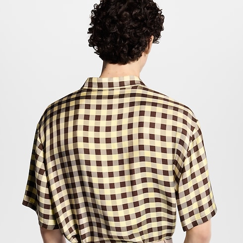 The bold, graphic style of this breezy, short-sleeved shirt is perfect for spring. Crafted from fluid crepe twill, it features a gingham check in heritage brown and pale vanilla yellow tones. A leather signature patch accents the chest pocket while pearly buttons add a lustrous accent. This striking piece brings a vibrant twist to timeless staples.