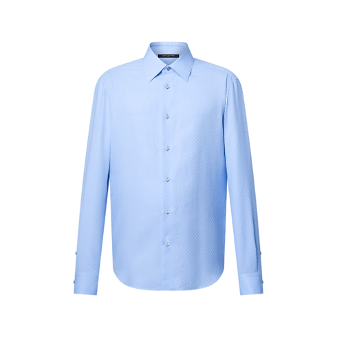 This elegant sky blue business shirt is crafted from fine organic cotton. A discreet tone-on-tone jacquard Micro Damier motif sets off the fabric’s natural luster, while an LV button fastens the collar and a woven LV label signs the back. This refined piece can be layered with a suit in the same motif for a sophisticated look.
