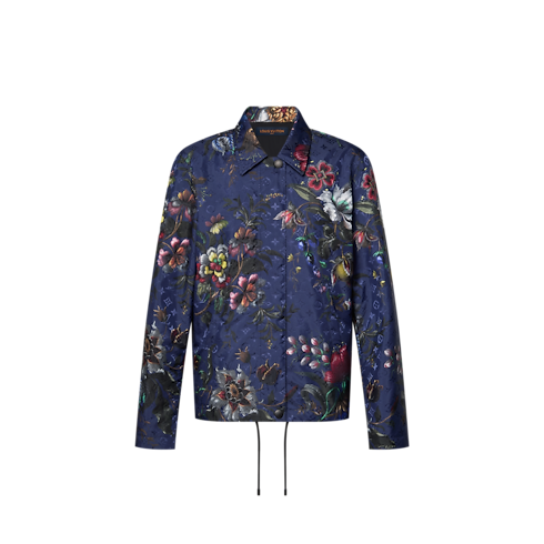 This jacket makes a chic statement in water-resistent nylon featuring a striking floral print in a rich array of tones, while a lustrous Monogram jacquard adds a subtle allover signature. It is cut in a straight shape with a collar and a hidden zipper for a clean finish. Complete with two side pockets and a drawstring hem.