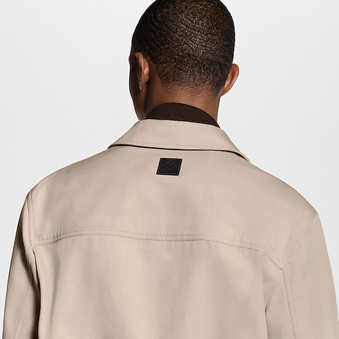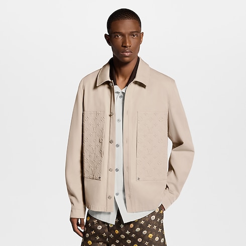 This workwear overshirt embodies this collection’s laid-back yet elegant mood. Crafted in soft beige cotton twill, it is adorned with two Monogram-embossed panels on the front lending a refined textural accent, while Monogram Flower rivets and pearly buttons add further distinction. A black leather patch signs the back. Matching pants make an effortlessly chic look.