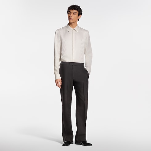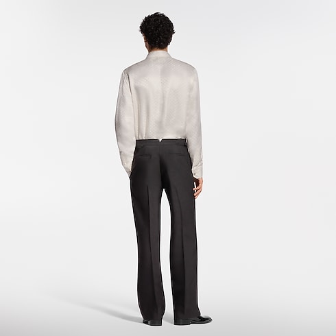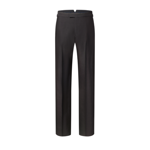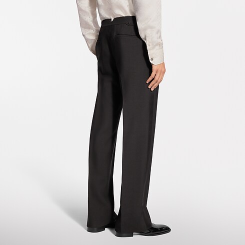 These black tuxedo pants are impeccably elegant, tailored from draped wool-silk crepe with satin bands down the outside of each leg. An adjustable waistband ensures a sleek silhouette with Monogram Flower rivets adding discreet signatures to the tabs. A matching tuxedo jacket and shirt make a chic evening set.