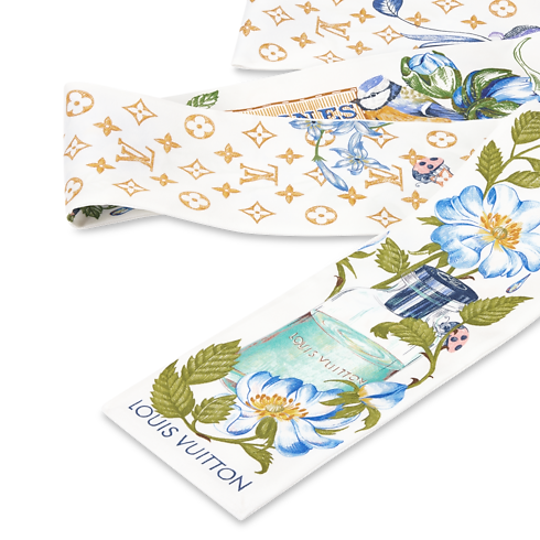 Crafted in sumptuous silk, the Fontaines Parfumées bandeau is a veritable celebration of elegance and creativity. Its intricate artistic pattern features delicate flowers in soft colors, mixed with images evoking a vintage perfume extractor. An easy-to-wear, ultra-feminine accessory, and an enchanting ode to the pleasures of the senses.