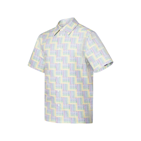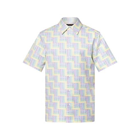 This breezy short-sleeved Oxford shirt is adorned with a graphic allover LV Stairs print featuring delicate Louis Vuitton lettering in pop colors in a subtle gradient effect. This modern style is perfect for spring paired with this collection’s preppy aesthetic. A Marque L.Vuitton Déposée label on the back adds a smart finishing touch.