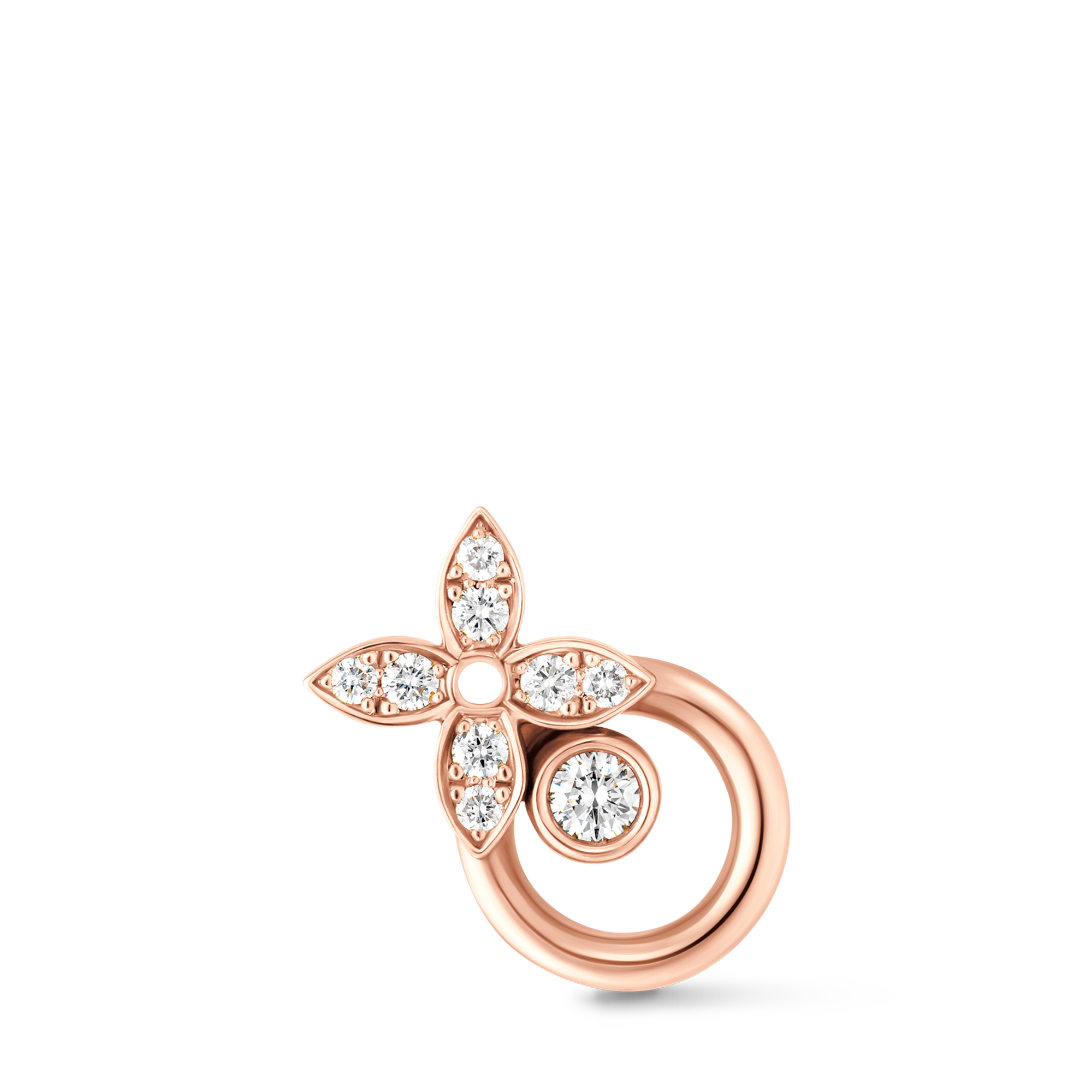 Fashioned from 18-karat pink gold, the Idylle Blossom ear cuff is an homage to the Monogram Flower. On three bands of pink gold the flower sits, eight brilliant-cut diamonds balancing on four petals. Worn alone or combined with studs or hoops, this piece lends itself to a variety of stylings.