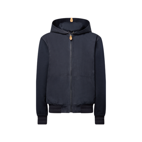 This sophisticated take on a hooded blouson features velvety smooth nubuck leather on the front and hood, while the sleeves and back are crafted from soft cashmere-wool double-face fabric. The timeless navy blue is accented with VVN leather signature tabs on the zipper puller and the hood. This luxurious midseason piece brings effortless elegance to a look.
