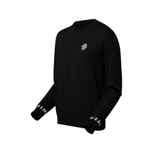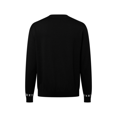 This smart black organic cotton crewneck is a light midseason layer. The timeless silhouette is embellished with contrasting jacquard signatures, with a band of LVs encircling the cuffs and a discreet ‘Marque L.Vuitton déposée’ signature ornamenting the chest. This versatile layer is an easy piece for completing everyday looks.