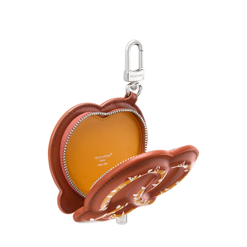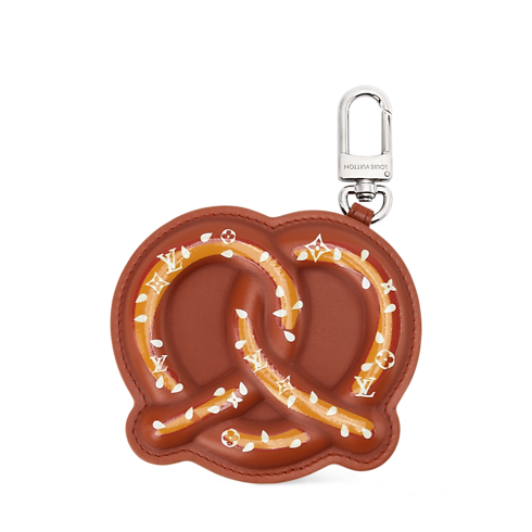 The LV Bretzel bag charm reinvents the snack as an accessory imbued with Louis Vuitton savoir-faire. The 3D treat is rendered in brown leather and a Monogram coated canvas back, with signature emblems adorning the twisted dough. It strikes a combination o
