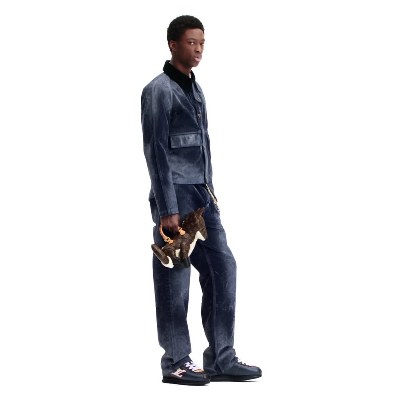 The LV Buttersoft sneaker comes in smooth calf leather with a denim effect. Designed by Men's Creative Director Pharrell Williams, this model nods to the 1960s, when sneakers first became a fashion item. It is notable for its exceptionally soft, padded upper and refined detailing, including emblematic natural leather trim and a dynamic LV Initials signature.