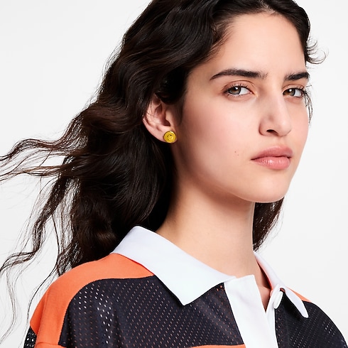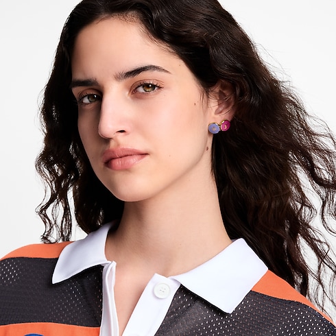 The eye-catching design of the LV Confetti earrings is a playful, joyous celebration of the House’s iconic emblems. Crafted in gold-toned metal, the set comprises three earrings in vibrant colors adorned with Monogram Flowers and the LV Initials. Perfect for mixing and matching, they bring a colorful burst of energy to an everyday outfit.