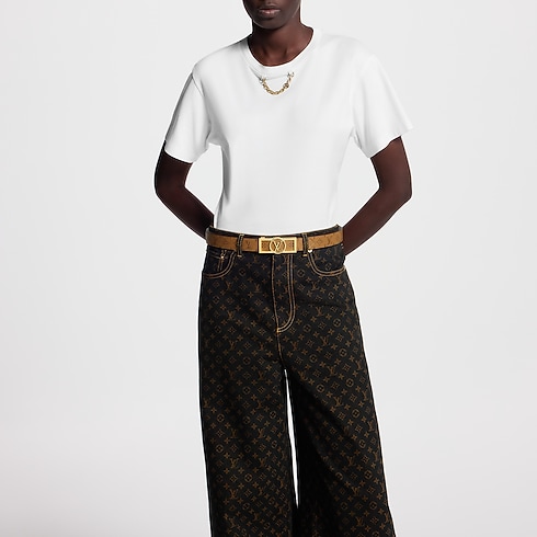 The Dauphine 25mm Reversible Belt is a contemporary design that features heritage House motifs. This piece has an updated buckle which nods to Nicolas Ghesquière's reimagining of the classic Dauphine bag. This reversible belt is finished with a polished rectangular closure and the signature LV Circle motif.