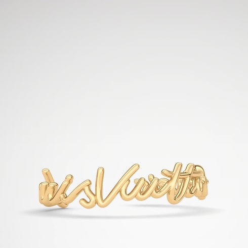 The casual-chic LV Script bracelet was inspired by a Louis Vuitton signature in a sleek hand-written style, first seen at the Spring-Summer 2025 runway show. Its creative design takes the form of an open band spelling out the House’s name in bright gold-colored metal. This precious, comfortable bracelet is easy to wear for everyday or special occasions.
