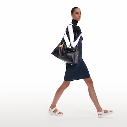 Striking signatures from the re-edition of the Louis Vuitton x Murakami collection reimagine the LV Sunset flat comfort sandal as a playful everyday statement. Crafted from coated canvas, the iconic Monogram motif is accented with bright rainbow tones inspired by the exuberant aesthetic of Japanese artist Takashi Murakami, while the front strap is embellished with chunky LV Initials with golden touches. Complete with a calf-leather lining, an anatomic footbed and lightweight micro outsole for elevated comfort.