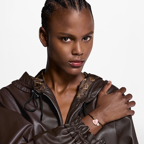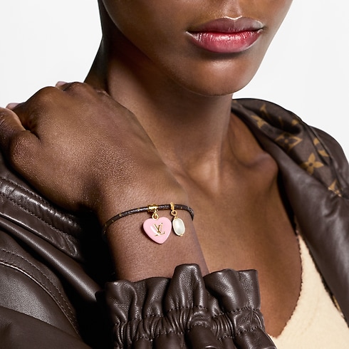 The elegant, sophisticated LV Sweetheart bracelet expresses the spirit of Valentine’s Day with an endearing symbol of love. Its Monogram canvas cord holds two enchanting charms: a lustrous resin pearl and a colorful heart accented with the LV Initials for a subtle signature. Ideal for layering with other bracelets, or worn alone as a romantic statement piece.