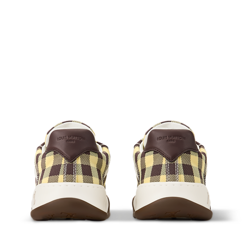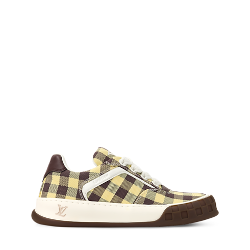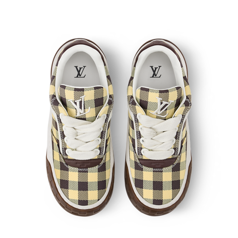 The LV Tilted sneaker comes in a mix of materials with a colorful gingham print, a key motif of the season. Inspired by vintage sneakers and skate shoes, this model is named for the tilted LV Initials on its tongue and outsole, which evoke the motion of skateboarding. Other distinctive details include the Damier pattern on the two-tone outsole.