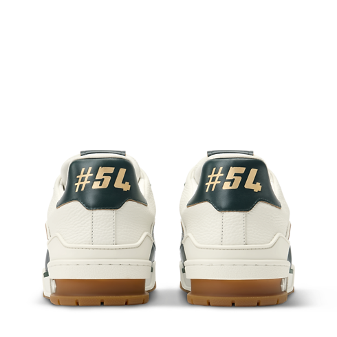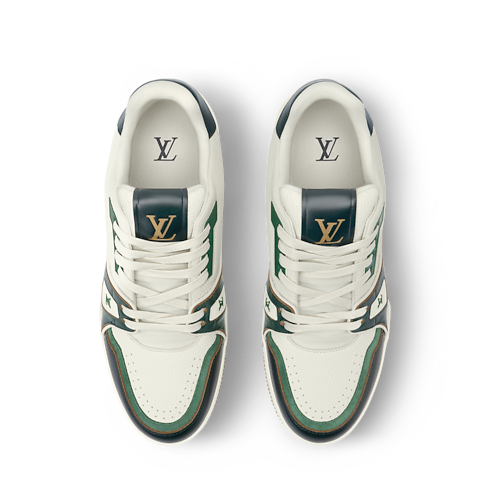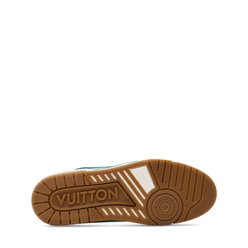 This refined interpretation of the LV Trainer sneaker combines grained and aged calf leather, fusing vintage-style materials with a contemporary design. This iconic model, which was inspired by classic basketball sneakers, is notable for its elaborately constructed upper, which features multiple House signatures, and its technical rubber outsole with Monogram Flowers.