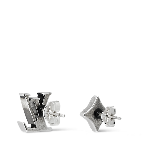 Constructed from versatile sterling silver, the LV Whisper stud earrings brim with nuance and mood. The pairing of a Monogram Flower and a set of LV Initials is rendered in dramatic relief, sculpted and finished with black. This intriguing collection of details enhances daily wear.