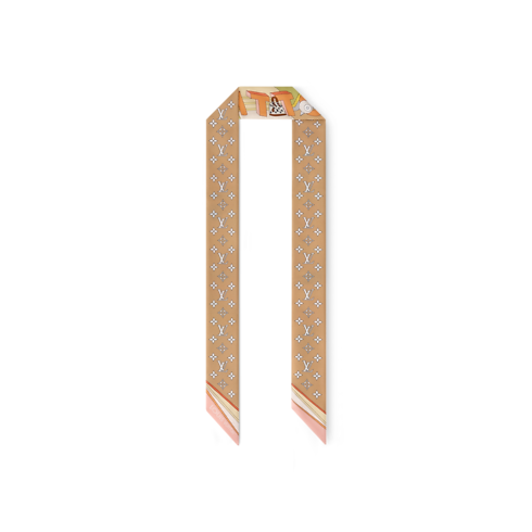 The all-silk LV Wonderland BB bandeau is a colorful ode to creativity and craftsmanship. Its eye-catching pattern depicts a whimsical futuristic landscape accented with Monogram Flowers and iconic Louis Vuitton luggage creations. Outsized letters with a striking 3D effect spell out the House’s name, adding an original signature to this elegant contemporary accessory.