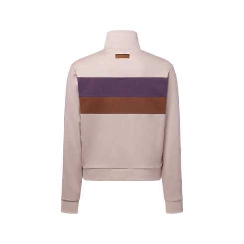 A refined take on a casual silhouette, this elegant beige track top is crafted in double-face cotton jersey accented with contrasting bands across the torso and discreet gold-stamped Louis Vuitton Paris lettering on the chest. This season’s graphic Louis Vuitton x The Darjeeling Limited motif adorns the inside, while a leather signature patch completes the back.