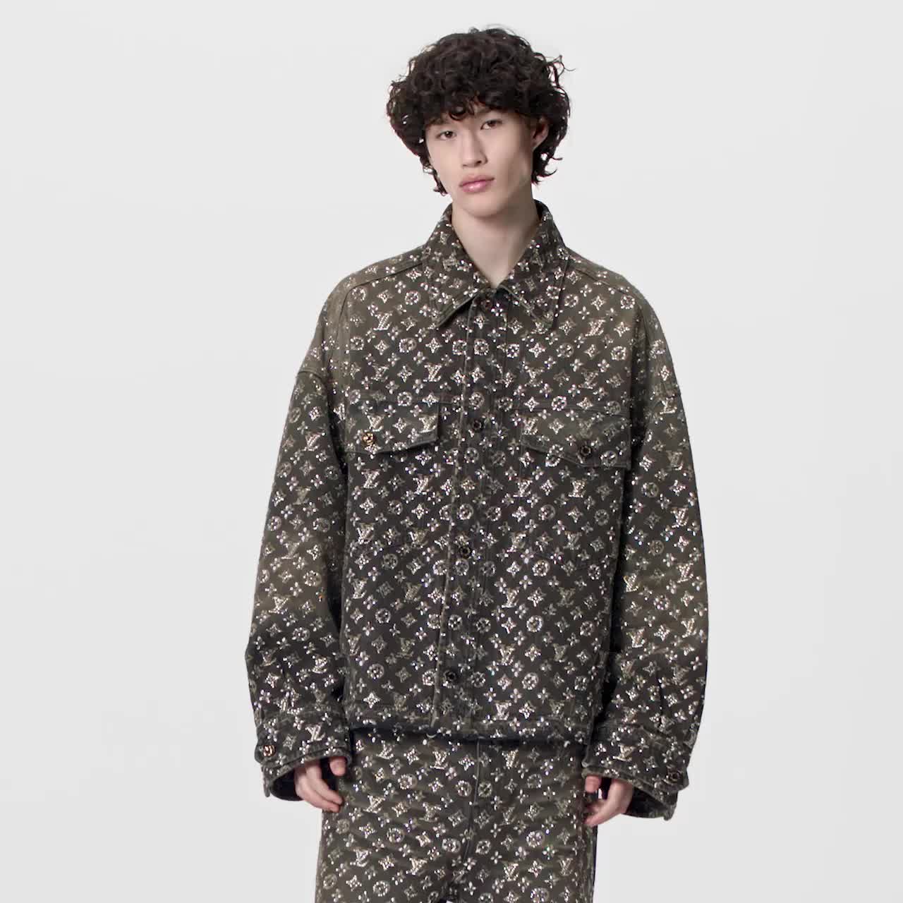 This exclusive Made To Order overshirt from the FW23 Show runway offers a sparkling elevated take on a daytime silhouette. Crafted from washed denim with a jacquard allover Monogram, it is ornamented with crystals, which are meticulously applied by hand. This piece has matching pants for a standout set.