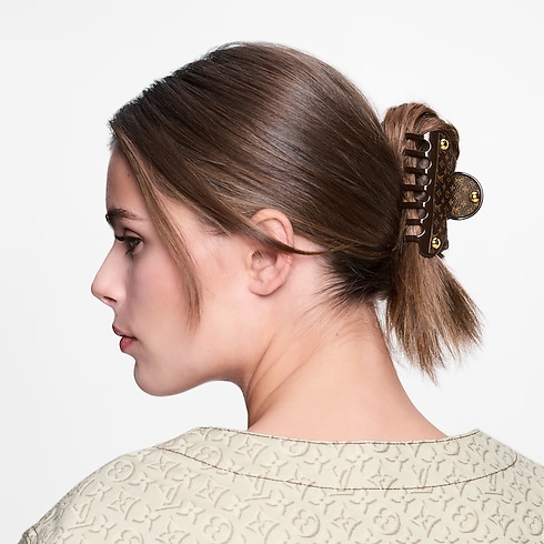 The stylish and versatile MNG Resin claw clip combines practical functionality with a heritage-inspired design. Crafted in durable resin, it features the classic Monogram pattern, accented with gold-colored metal studs recalling the rivets on the House’s historic luggage creations. Ideal for keeping any hairstyle perfectly in place with a distinctive signature touch.