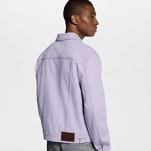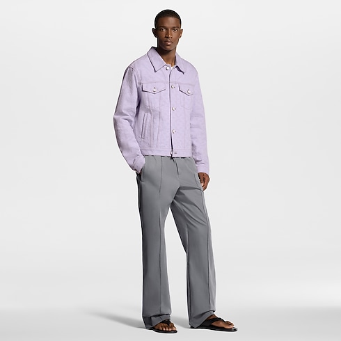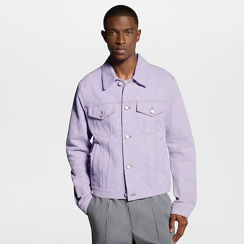 The denim trucker jacket is reinvented in a joyful lilac color that captures the fresh mood of spring. It features a jacquard Monogram motif while the fabric is overdyed, resulting in a unique, softly textured look. Tone-on-tone pearly buttons add a chic finishing touch. Pair with matching shorts for an eye-catching set.