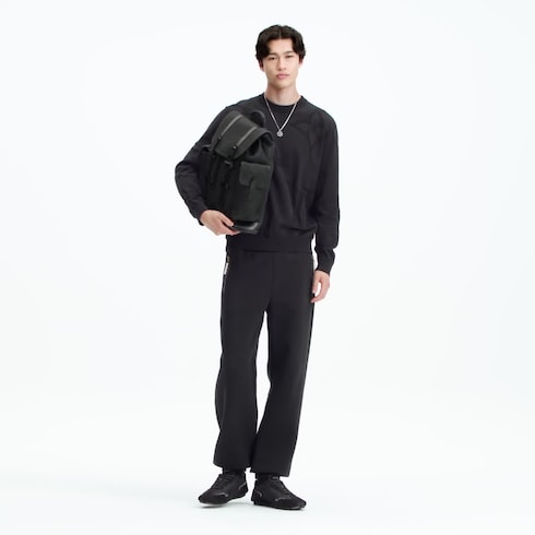 This smart black cotton crewneck is elevated with a tonal allover Monogram Macro motif, featuring large Monogram Flower and LV signatures incorporated into a jacquard knit with a subtly textured effect. With its soft hand and sophisticated graphic motif, this piece brings an elegant twist to a timeless look.
