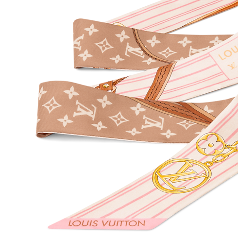 Inspired by the iconic Neverfull handbag, the all-silk My Neverfull BB bandeau is an ode to the House’s luggage-making legacy. Its bold, graphic pattern recalls the striped canvas linings of Neverfull handbag, accented by an illustration of the historic “Articles de Voyage” patch. LV Circle and Monogram Flower emblems add an extra signature touch.
