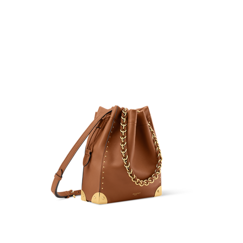 Introducing the Noé Trunk, an elegant bucket-shaped style that is both timeless and contemporary. Crafted from smooth calfskin, it is adorned with sleek gold-toned hardware, including trunk-inspired corners that nod to the House’s iconic travel heritage, as well as a removable braided chain. It is designed with a drawstring closure to keep valuables secure.