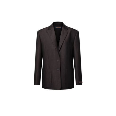 This blazer has timeless appeal in an elegant wool-linen blend in a rich hue. It is tailored in an oversized fit in a straight-cut shape detailed with a notched lapel collar, a welt top pocket and large patch pockets on each side. A slim leather Louis Vuitton patch adds a sleek signature touch to the left sleeve.