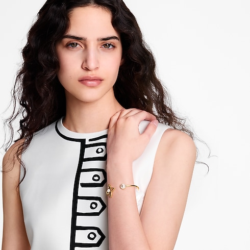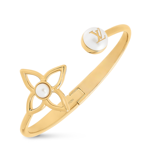 The iconic Monogram signature is paired with the symbolism of the pearl in the subtly glamorous design of the Pearly Flower bracelet. Crafted in gold-toned metal, it features an openwork Monogram Flower plus two resin pearls, one accented with the LV Initials for an extra House touch. Perfect for any occasion, this exquisite bracelet emanates feminine refinement.