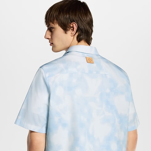 This fresh and breezy short-sleeved shirt is crafted from light cotton with a printed LV Flower X-Ray motif in pale blue and white tones. Printed over a Damier base, the graphic floral motif incorporates discreet LV and Monogram Flower signatures. This signature piece can be layered under a collarless jacket in the same motif.