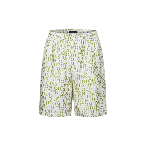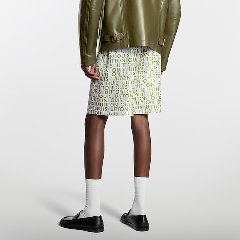 These fluid drawstring shorts, crafted from organic silk, are elevated with a printed LV Maze motif from the Spring-Summer 2026 show. Graphic green and blue Louis Vuitton lettering, inspired by hand-painted billboards from this season’s voyage to India, brings a modern accent to the milky white base. A matching short-sleeved shirt makes a laid-back yet luxurious set.