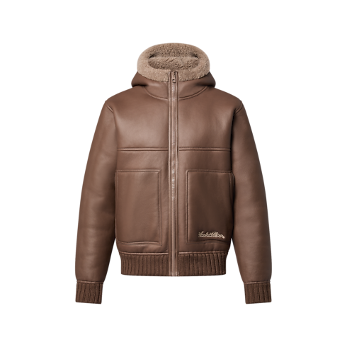 With its easy and contemporary silhouette, this reversible hooded blouson featuring minimalist workwear proportions offers a warm and tactile outer layer. The woolly side is distinguished with a subtle Monogram cut into the shearling creating a relief effect, while a Marque L.Vuitton Déposée label adorns a leather pocket. A thick-ribbed hem and cuffs keep this versatile piece extra snug.