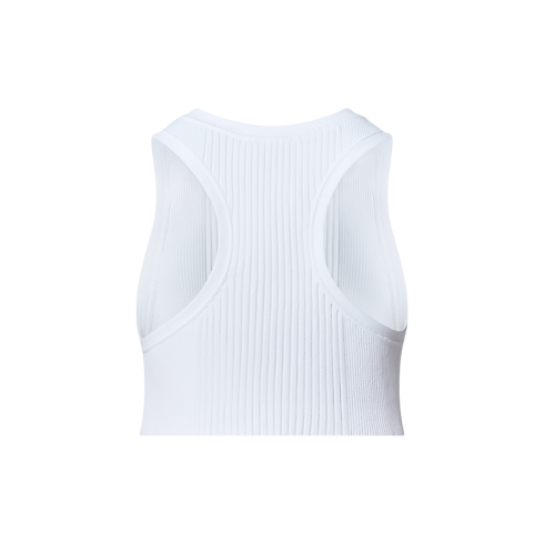 A favorite style refreshed with a chic textured finish. This crop top has a sleek and sporty vibe in stretch viscose that is both fitted and flexible for comfortable wear. A combination of thin and thick ribbing elevates the look, while an LV Circle chain detail trims the crew neck with a contemporary signature.